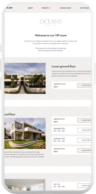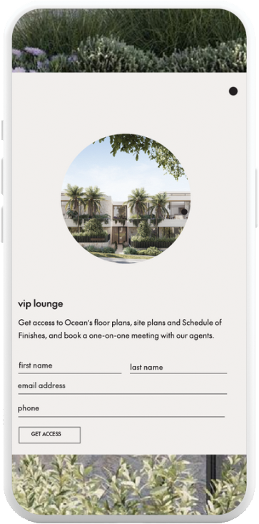 Buyers enter their details to access floorplans, pricing & exclusives